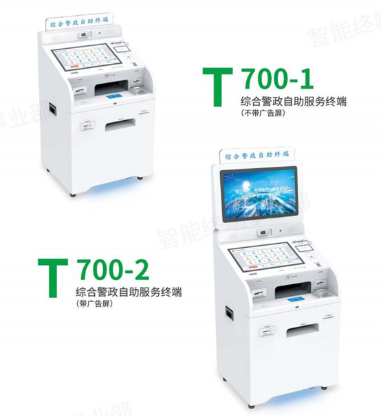 综合警政自助服务终端 T700 在原有自助服务终端基础上新增了居住证签注机、港澳通行证签注机等硬件模块,不仅能支持常规的政务服务、便民服务、金融服务事项办理,也增加了警务自助服务事项的支持,可以大大节省政府的采购成本,解决了自助终端多头建设造成巨大浪费的难题。